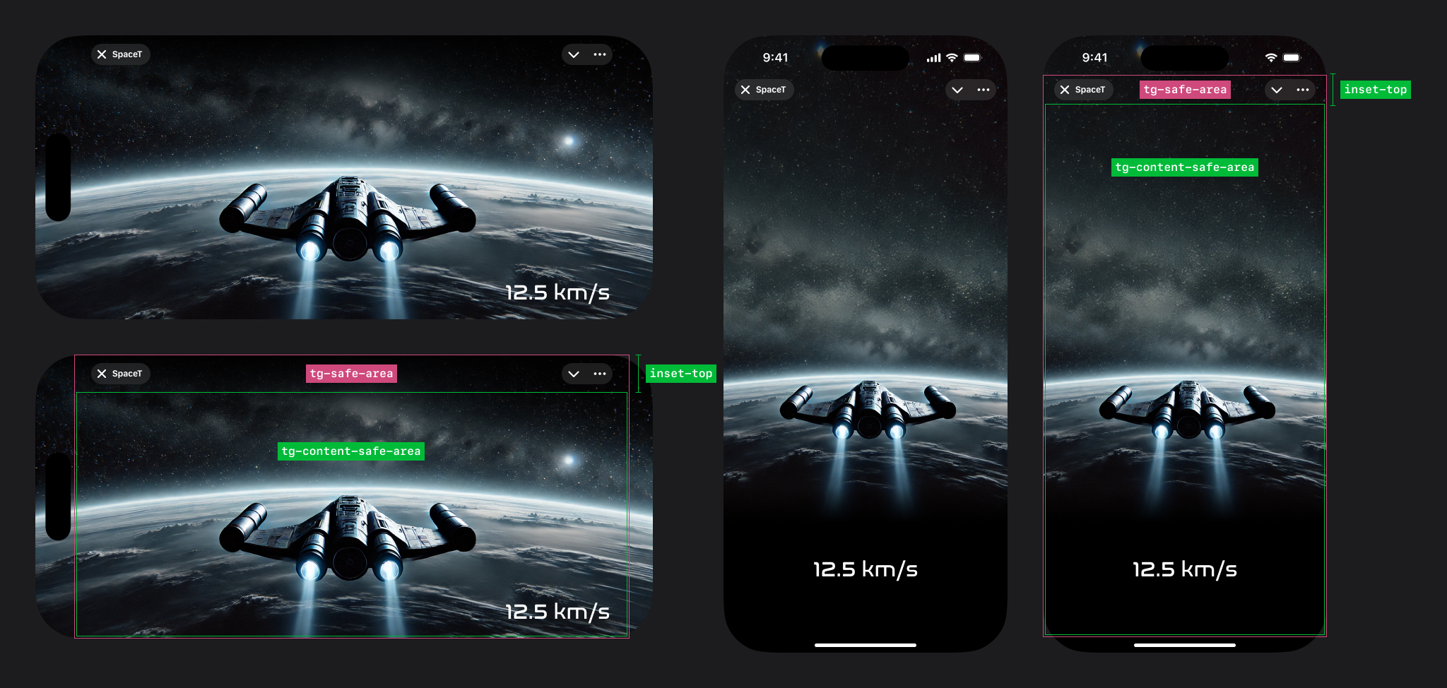 | contentSafeAreaInset NEW | ContentSafeAreaInset | An object representing the safe area for displaying content within the app, free from overlapping Telegram UI elements. |