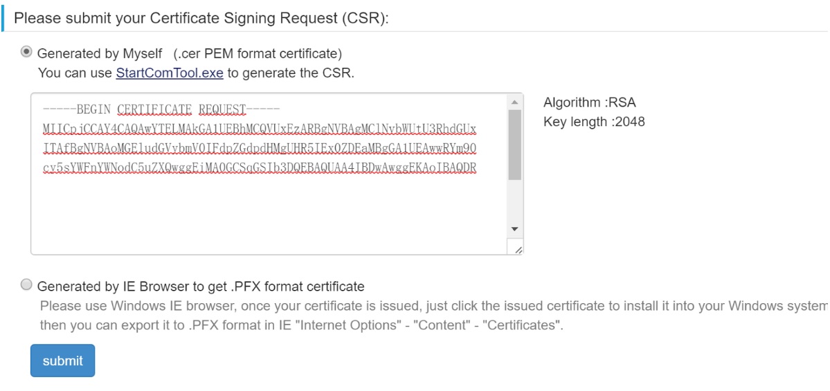 Using a verified certificate means you already have, or will obtain, a certificate backed by a trusted certificate authority (CA). There are many ways to acquire a verified certificate, paid or free. Two popular examples of free suppliers are StartSSL and Let’s Encrypt. You’re welcome to pick another. Just make sure first the supplier is likely to be supported. Check this list before selecting a CA. Once you’ve picked a CA and validated your identity with them, you can craft your certificate. This frequently starts by generating a CSR (Certificate Signing Request). Generating a CSR is done either through your host machine, or online via the tools provided by the CA.